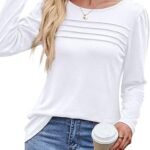 OFEEFAN Long Sleeve Shirts for Women Fall Fashion 2024 Dressy Casual Blouses Trendy Pleated Tunic Tops for Leggings