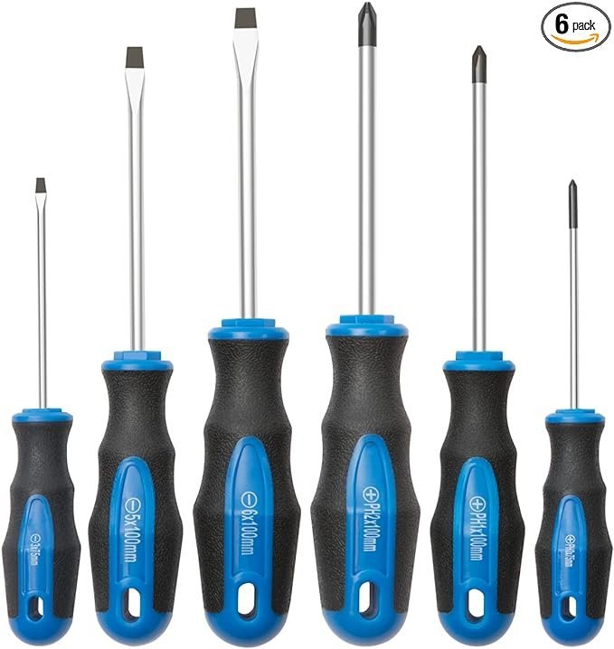 6PCS Magnetic Tip Screwdriver Set, 3 Phillips and 3 Flat, Professional Cushion Grip | 6-Piece Hand Tools Set